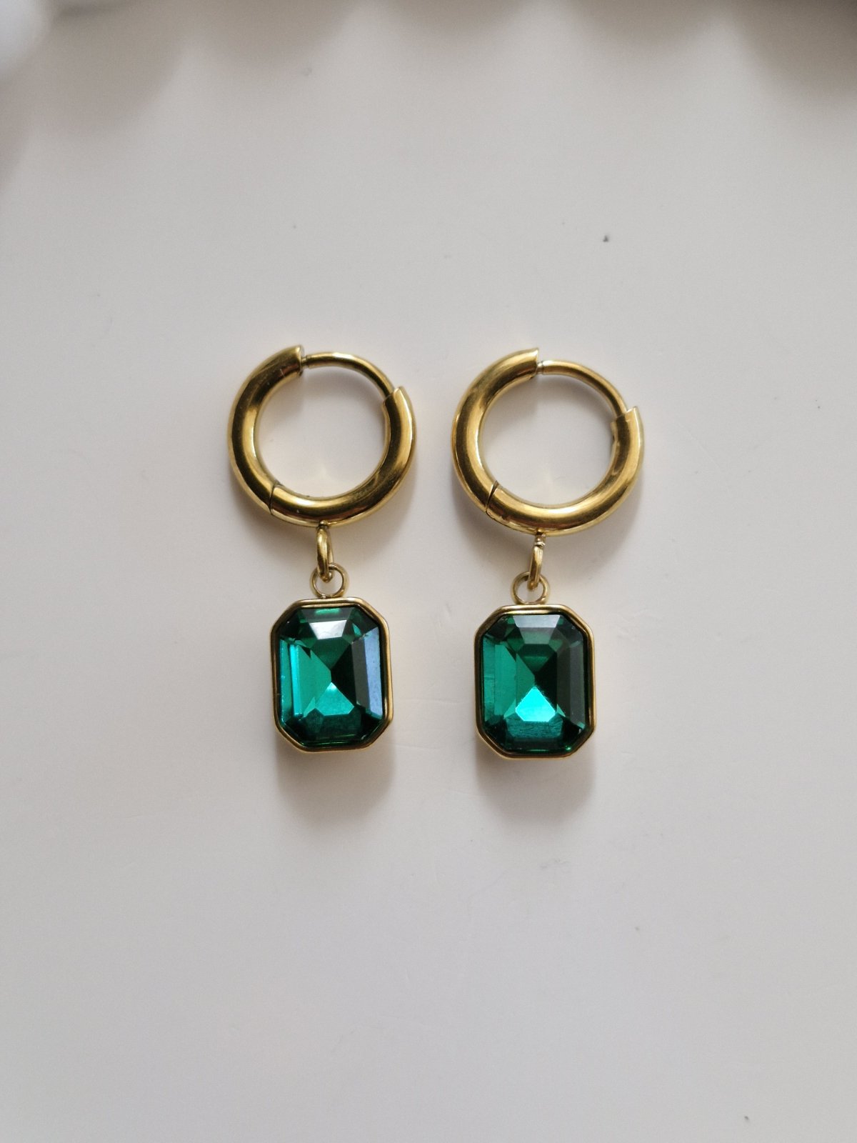 Ατσάλινα επιχρυσωμένα κρικάκια διαμέτρου 1.2εκ. με σμαραγδί ατσάλινα ζιργκόν 1εκ.