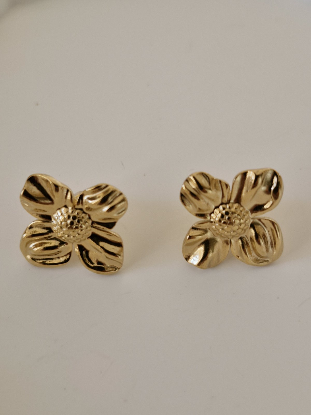 Ατσάλινα επιχρυσωμένα καρφωτά σκουλαρίκια με σχέδιο vintage λουλούδι 1,5εκ.
