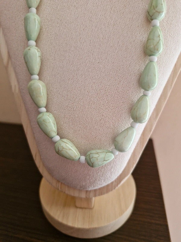 Ατσάλινο κολιέ από Χαολίτη και ενδιάμεσα λευκή χαντρούλα.