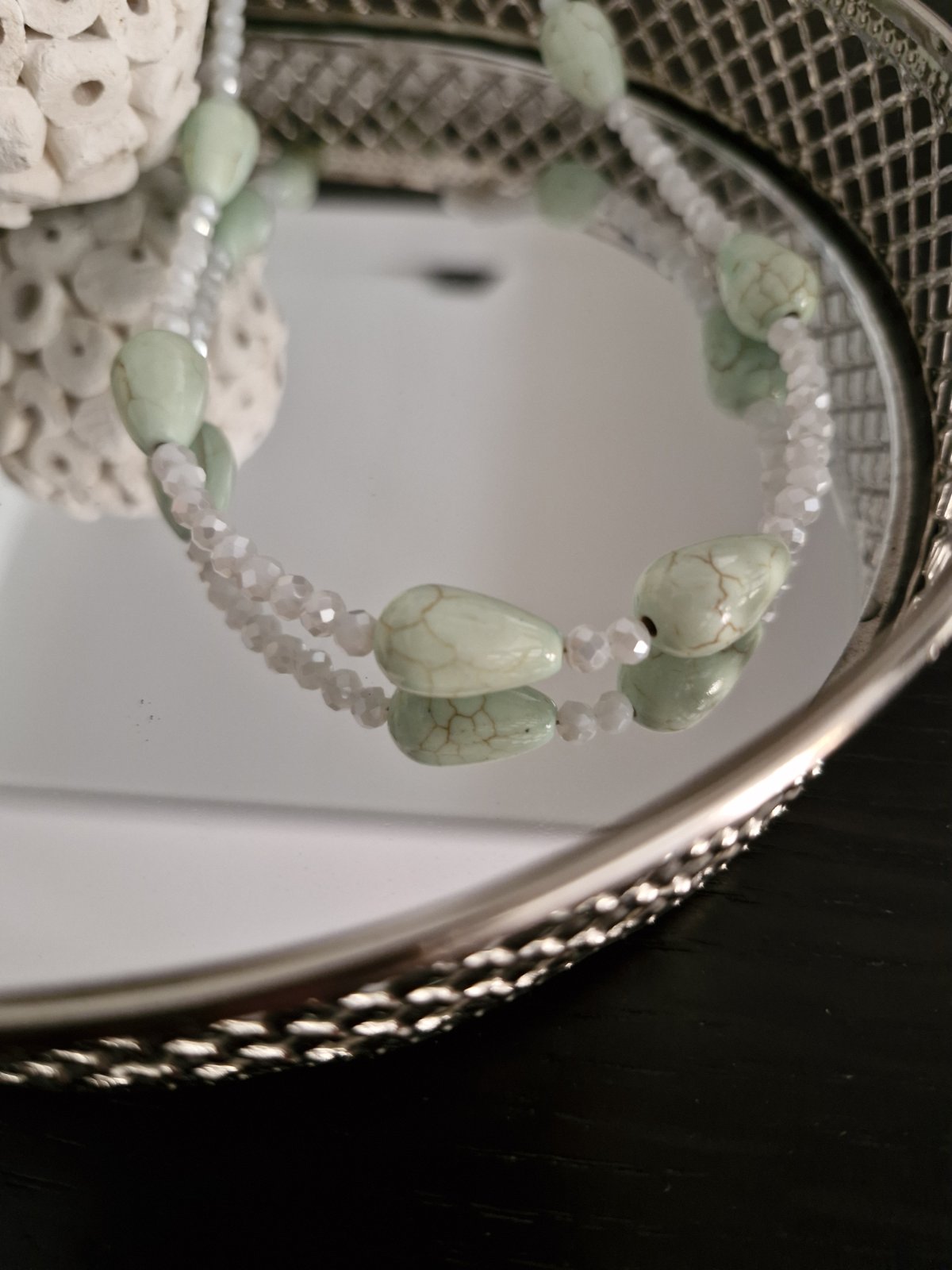 Ατσάλινο κολιέ αποτελούμενο από λευκά κρύσταλλα και χαολίτη δάκρυ.