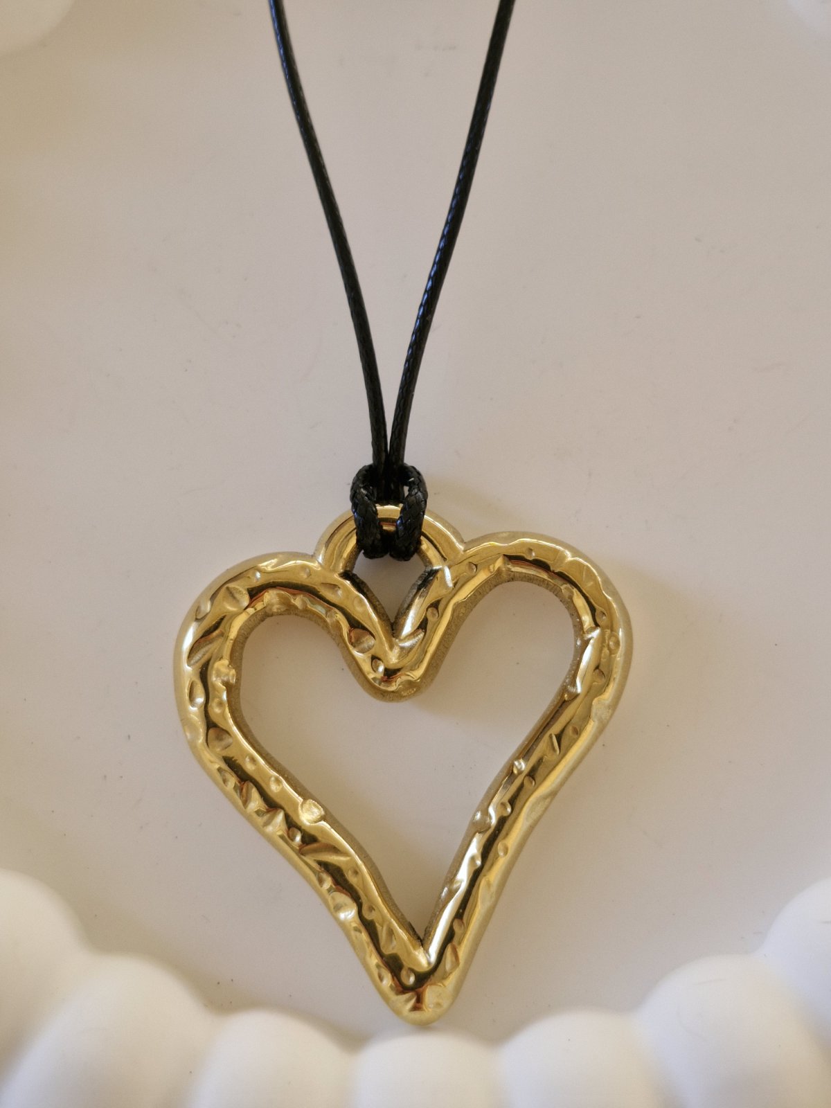 Ατσάλινη επιχρυσωμένη καρδιά διαστάσεων 4cm με κορδόνι δερματίνη