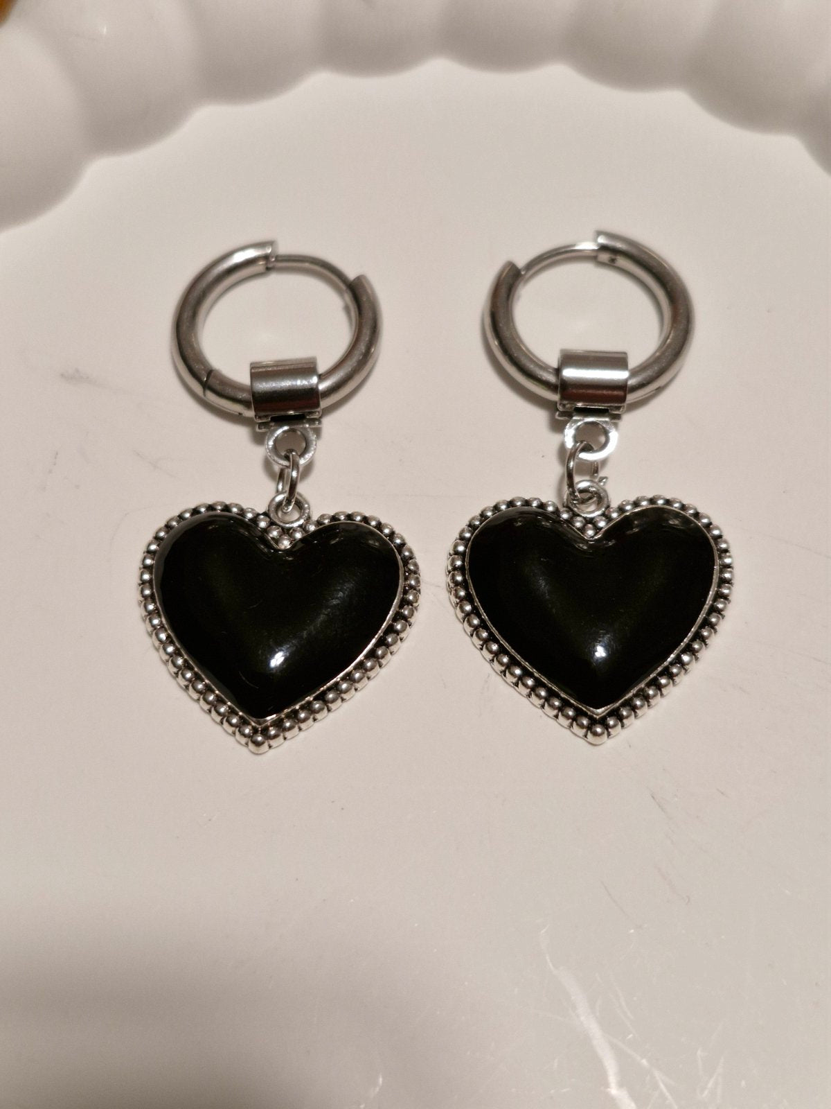 Ατσάλινα ασημί κρικάκια με κρεμαστές μεταλλικές καρδιές 2εκ.